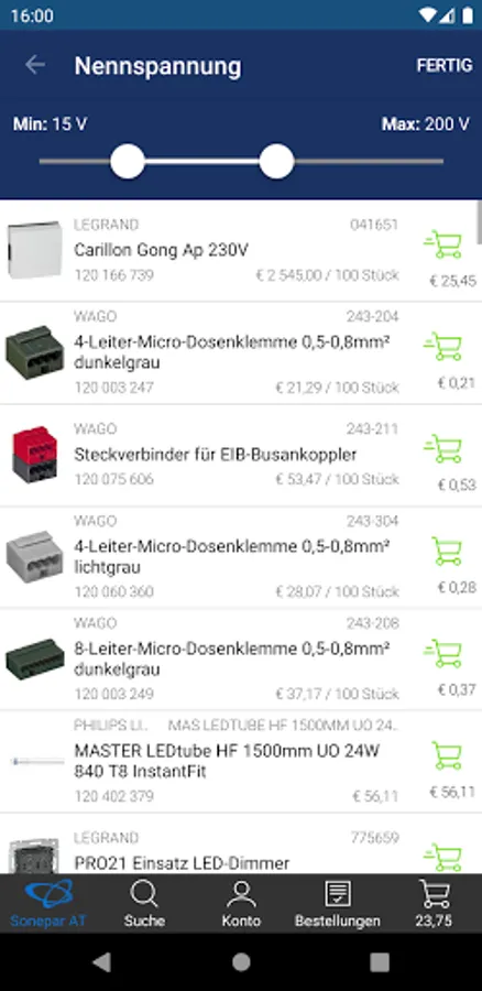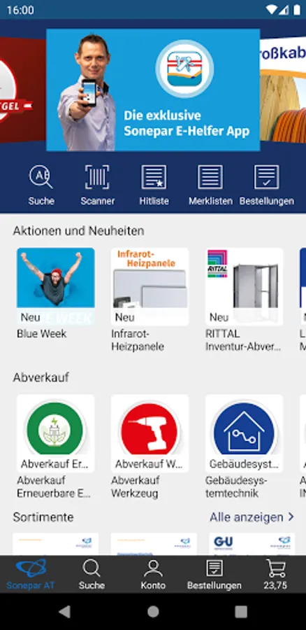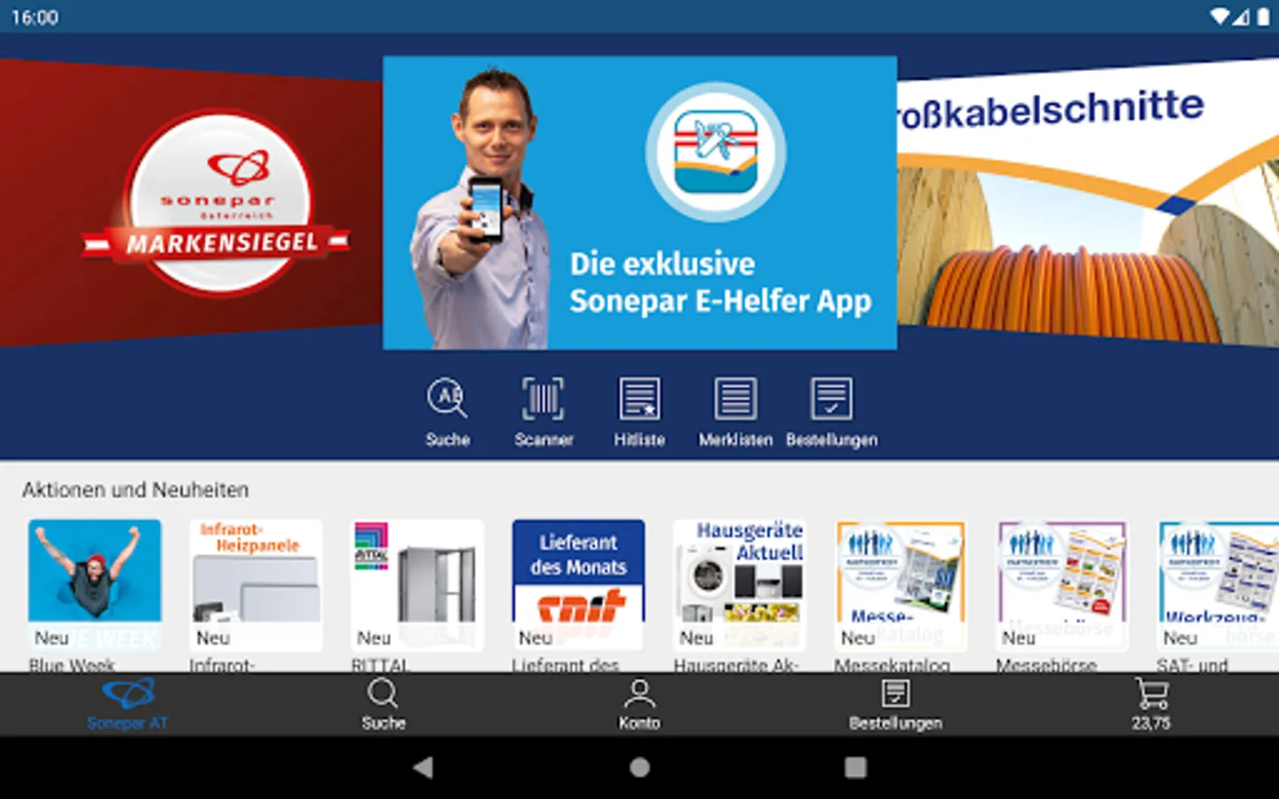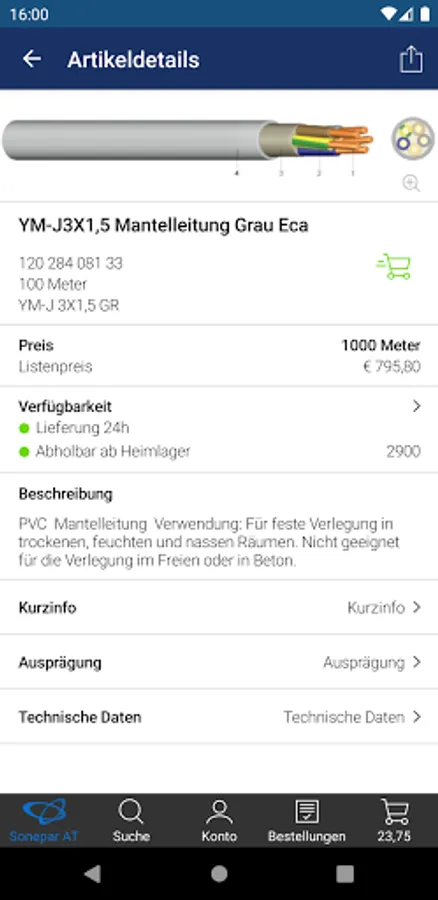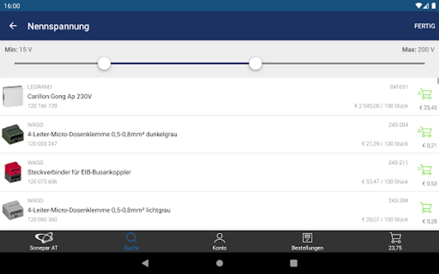The Sonepar app offers you all the important functions for thorough article research, ordering and tracking (Track & Trace). Use the app directly on the construction site, on the go or in the office. A central advantage here is the offline capability. You can still access all functions of the Sonepar app even in places where there is no reception. Orders that have not been sent will be sent automatically as soon as they are received again.