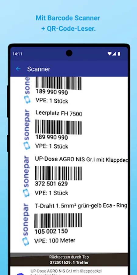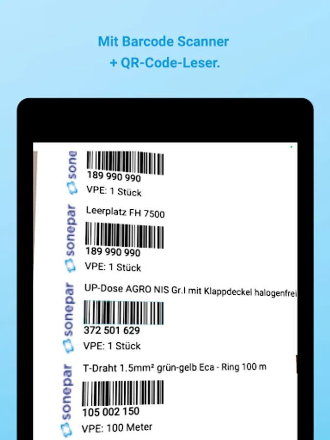Practically all codes can be read with the camera. It is useful to reorder items based on E-No or EAN codes. The delivery note can be accessed digitally on the package label without first opening the package.
