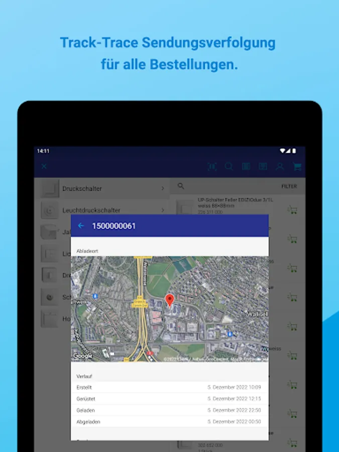 With our “Track & Trace” function, you are always close to your order. Shipment tracking ensures complete and detailed transparency about the delivery status of ordered goods as well as the expected time of your delivery.
