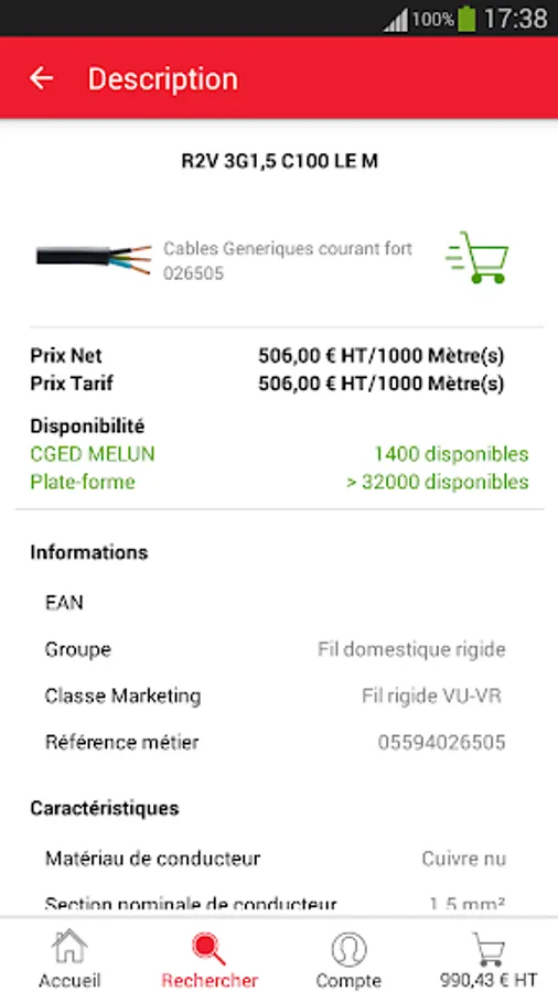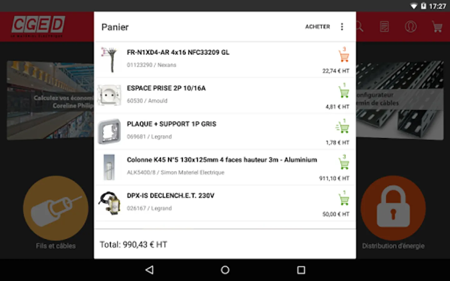 Even without Internet connection, you can access with the app to all our articles. For example if you find the basement or on a remote job site, you can add to your cart the items required, and then send your order as soon as you return to an area covered by the network. If you already have a user account in our Webshop you can immediately use the mobile app for your orders.