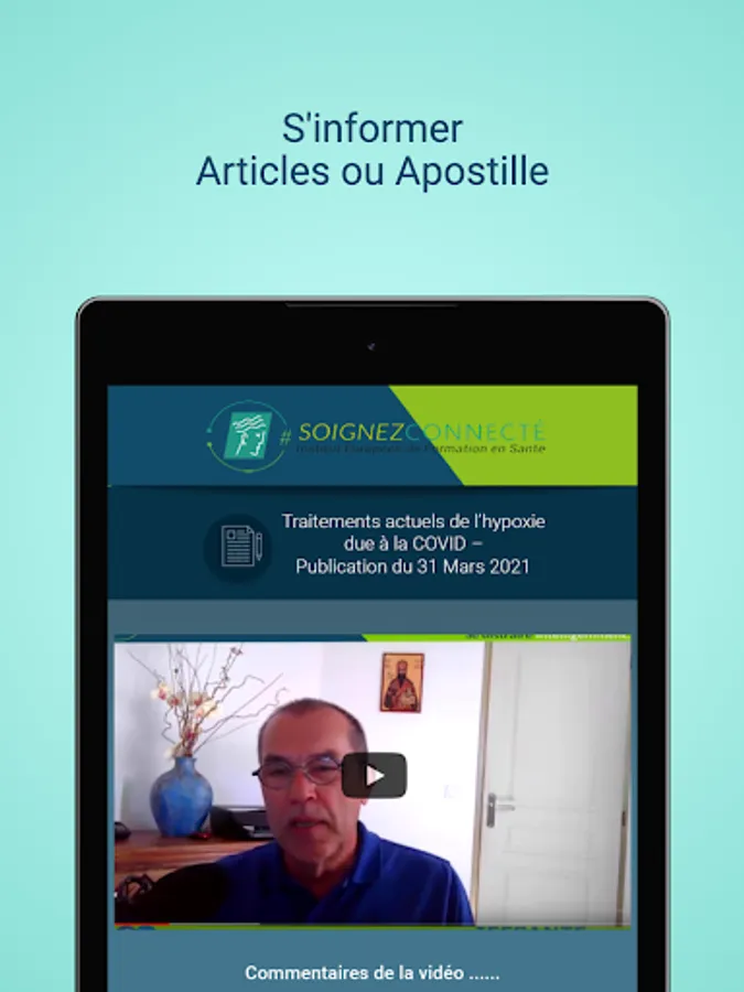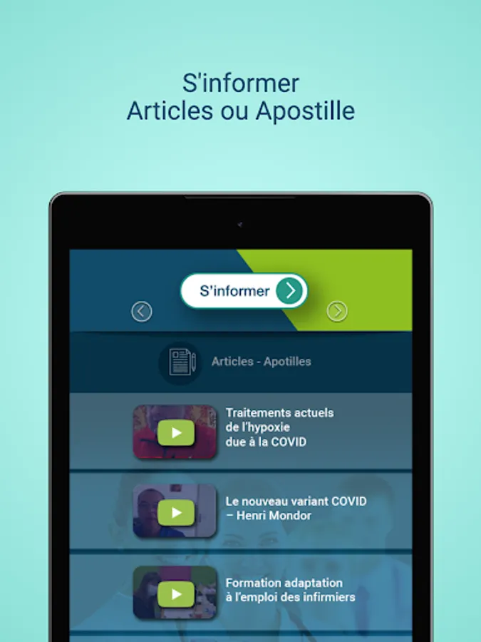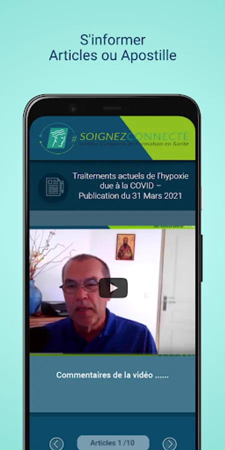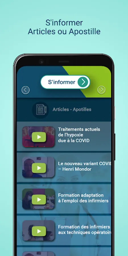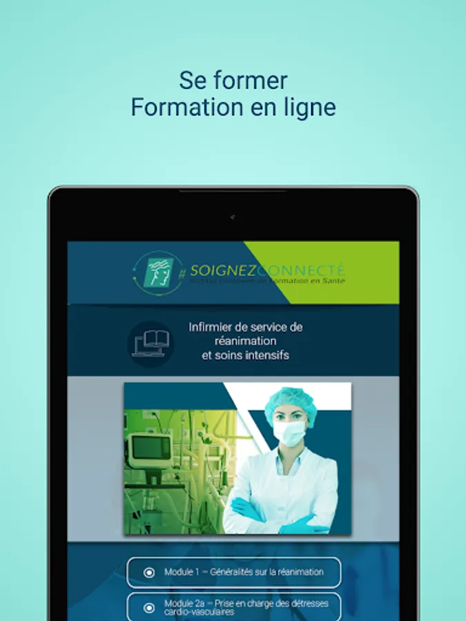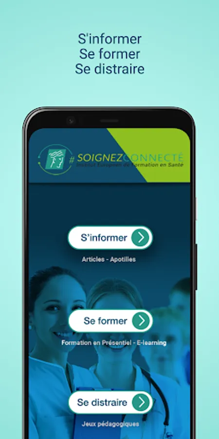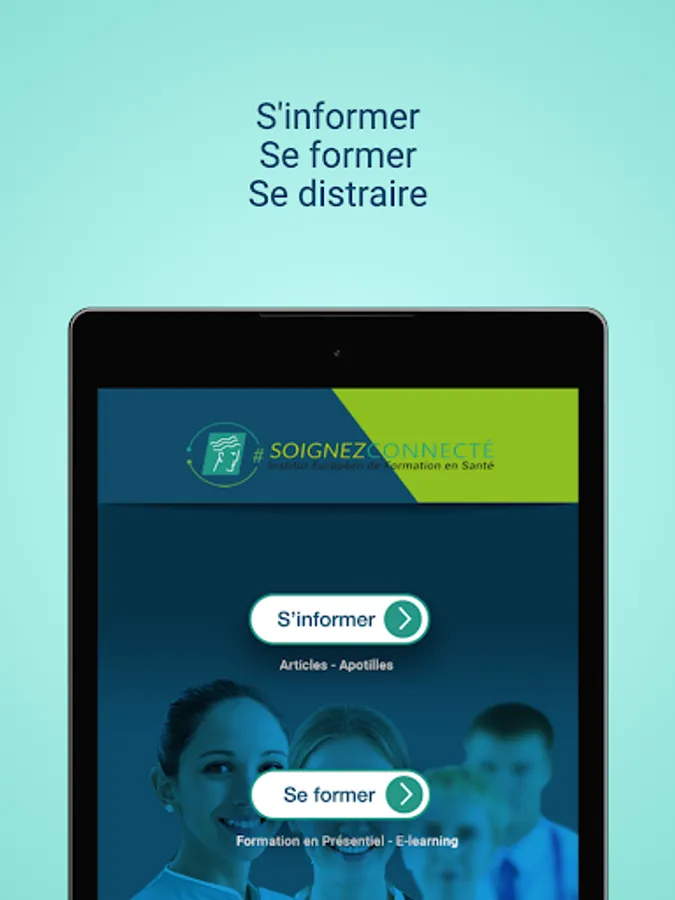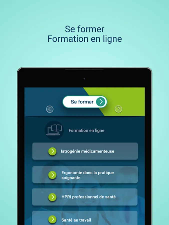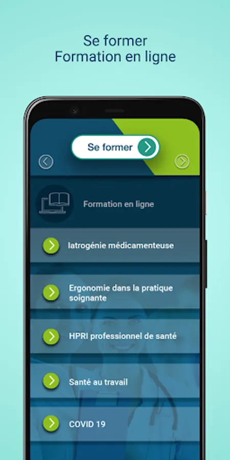 The "SoignezConnecté" application from the European Institute for Health Training provides training and information on topics related to the activity of health professionals by: