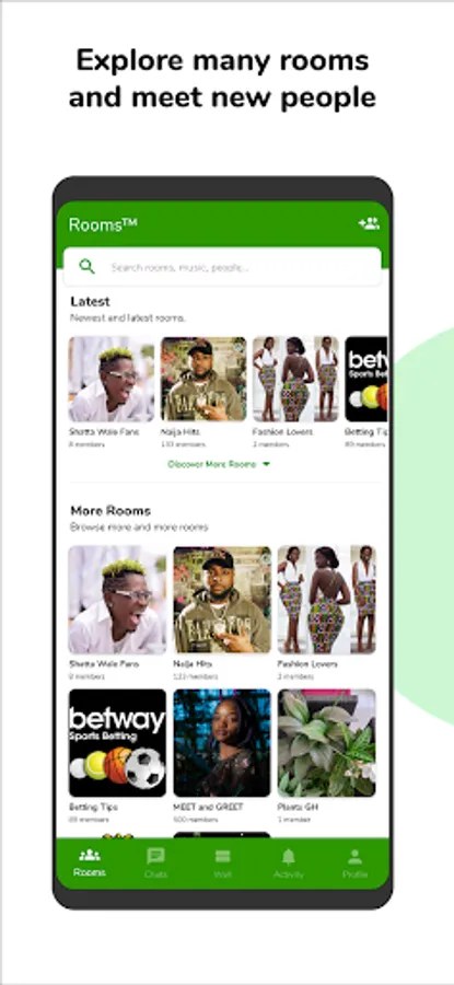 • OPEN ROOMS: Explore many rooms openly without know the administrator.