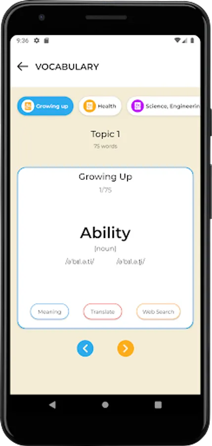 Vocabulary section that helps you memorize the top words you need to master for the IELTS exam.