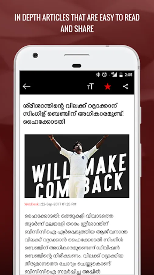 The ieMalayalam app is ideal for those who want to keep track of Kerala News, Opinion, and Videos. Among Malayalam news apps, this stands out with its unique language style and visual play. The ieMalayalam app also showcases best of opinions on the top trending news in Kerala and rest of the world, written for a discerning audience. The app follows a distinct visual language based on the visualizations that make ieMalayalam content unique in every way. The app offers the options to save stories for offline reading and has separate sections for Kerala News, Malayalam Entertainment, Sports, Kerala social buzz, lifestyle, technology, Malayalam features, Opinion and Malayalam Literature. The ieMalayalam app also has a photo gallery section as well as a dedicated section for news on Kerala's overseas population.