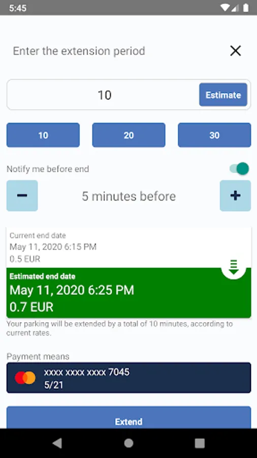 Follow your activities without worries, TIMO will notify you a few minutes before your parking time ends!