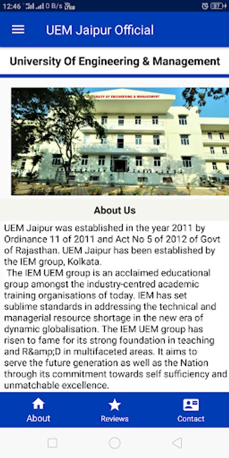 University Of Engineering And Management (UEM), Jaipur is a Private University which was established under the Act no. 5 of 2012 of Government of Rajasthan. The University is approved by University Grants Commission (UGC) and All India Council for Technical Education (AICTE). It is also a member of Association of Indian Universities (AIU) and is accredited with “Grade A” by National Assessment and Accreditation Council (NAAC). UEM offers various Undergraduate, Postgraduate and Doctoral programs through IEMJEE examination.