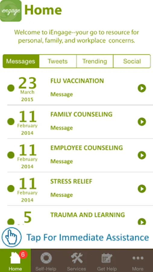 The Engage Employee Assistance Program provides up to six sessions for assessment and short-term problem resolution for employees and their dependents. If more sessions are needed or if the problems are such that other professionals should be consulted, referrals are made. In most cases, the employee's health insurance will assist with the payment of any additional costs.