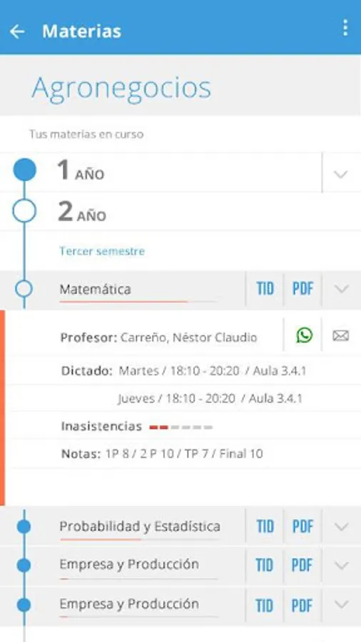 #SUBJECTS. All info on the subjects you are studying, with access to study material TID, schedules and classrooms, contact the teachers, absences and grades.