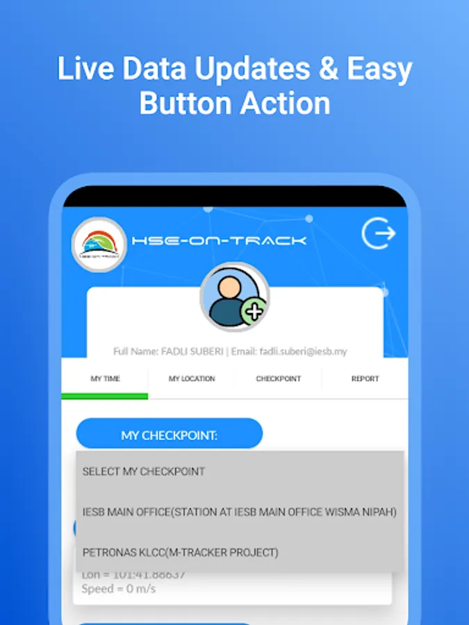 HSE-ON-TRACK to monitor Health and Safety Officer staff movement, location, time exposure at work site. The HSE Officer must CLOCK-IN and CLOCK-OUT as prove that the attendance is being taken using the apps.