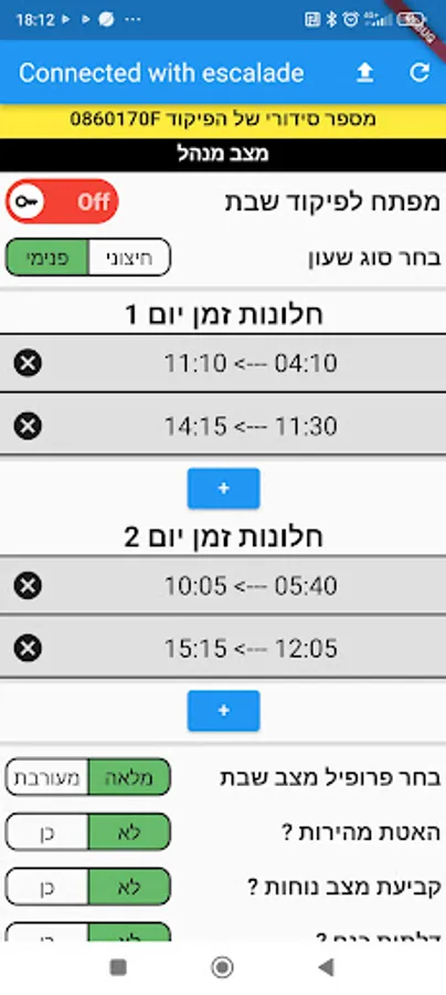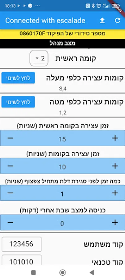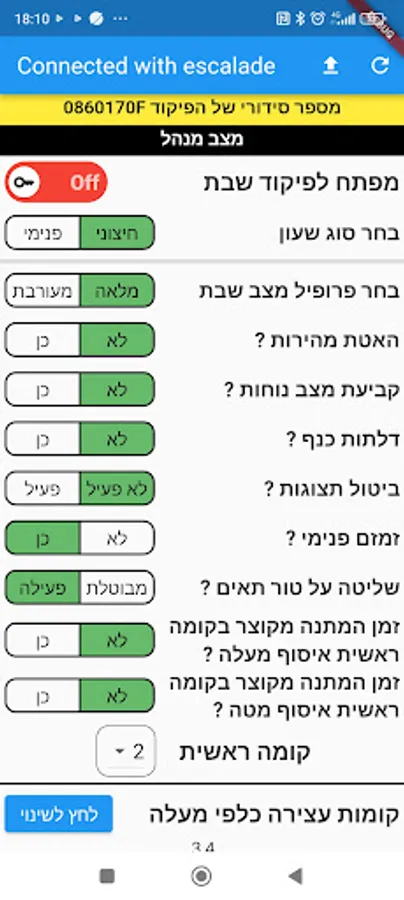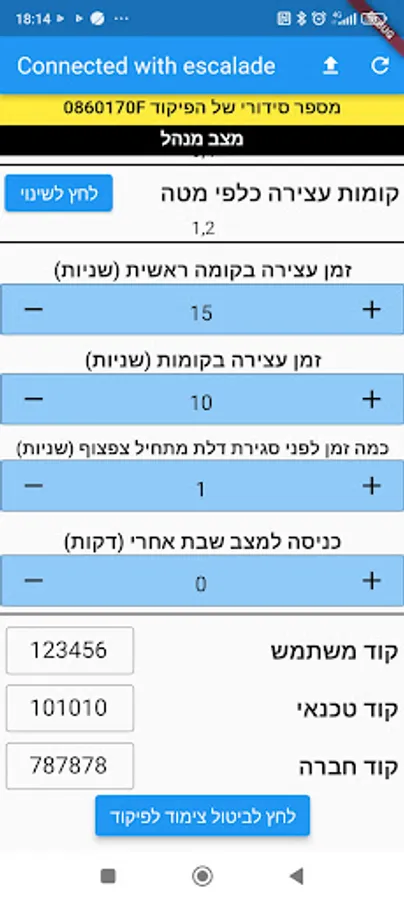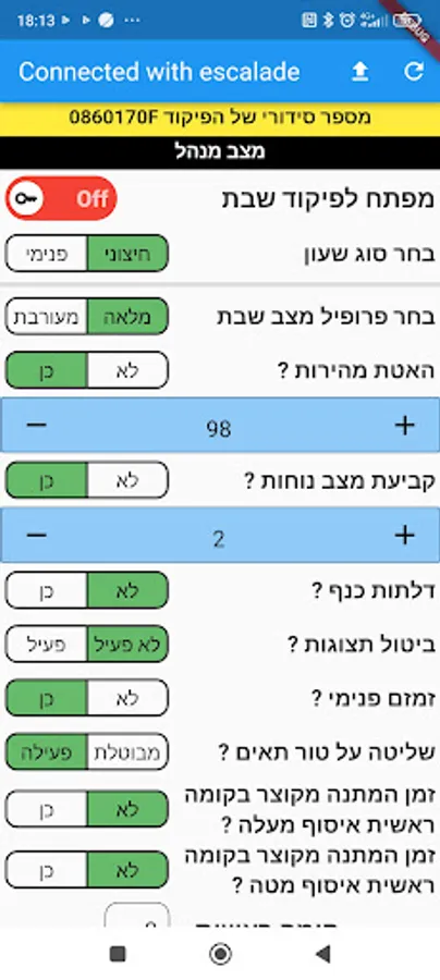 The application is used to change settings in Aritech's Shabbat command system, which connects to Arkel company's elevator commands.