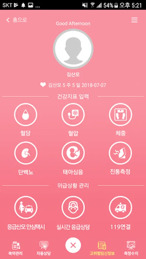 ★ 119연결 : 응급상황 시 119 전화연결과 동시에 해당산모의 정보(이름, 주수, 임신정보)