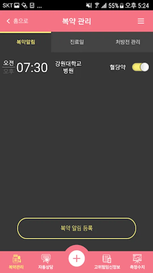 2. 복약 관리 : 규칙적인 약 복용을 위한 알람을 제공합니다.
