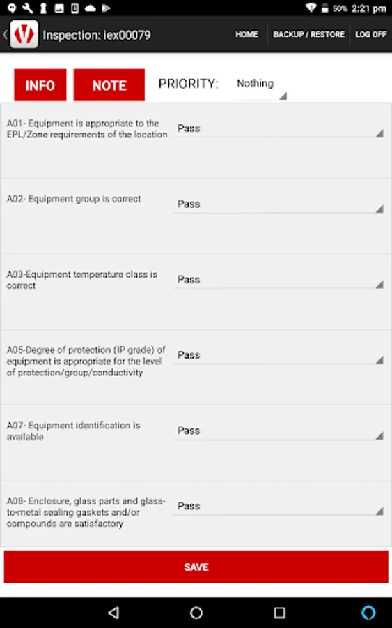 • Inspection questions are intelligently selected based on the location, area classification and the equipment/inspection type.