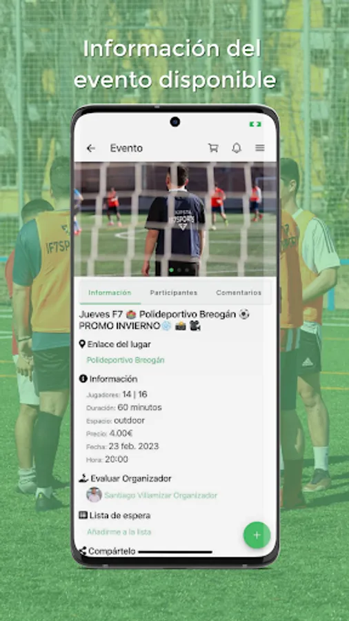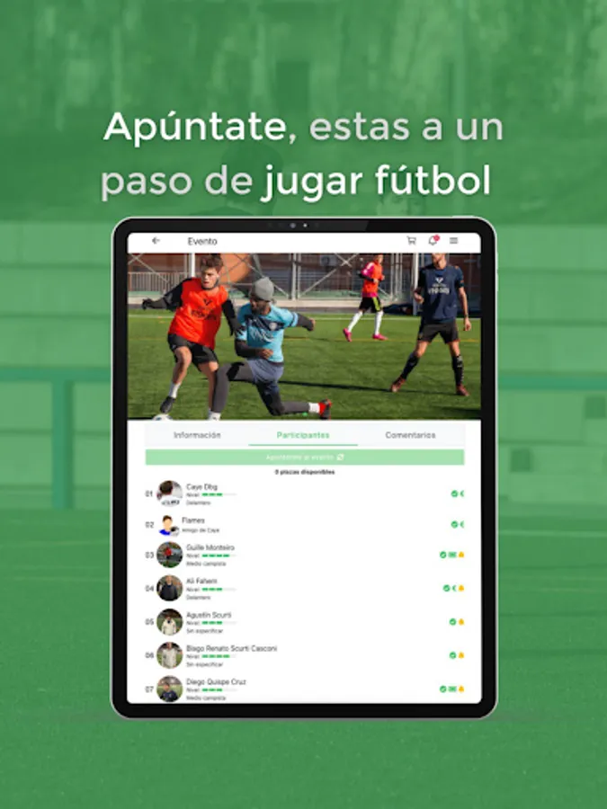 IF7SPORTS allows you to play soccer without having to coordinate with your friends, it's simple, you enter the App and join the event you want.