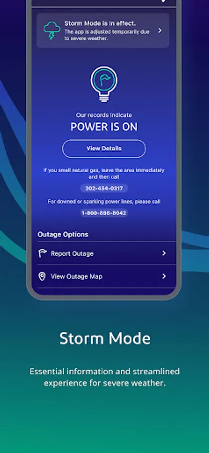 Delmarva Power’s free app allows you to easily access your account information on the go. The app makes it simple to manage more than one account at a time and is available to both residential and business customers on your smartphone or tablet. You can report your outage and stay up-to-date on the restoration status from anywhere. Key features include: