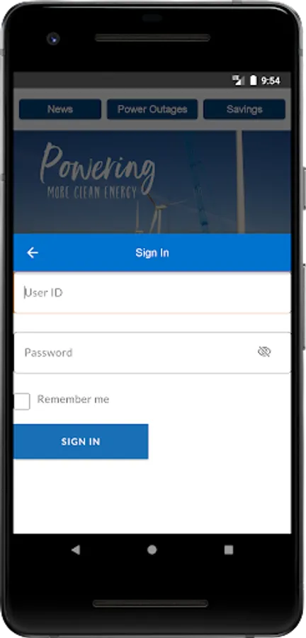 • Log in with your existing Pacific Power user ID and password, or quickly and easily create an account to access secure services through the app.
