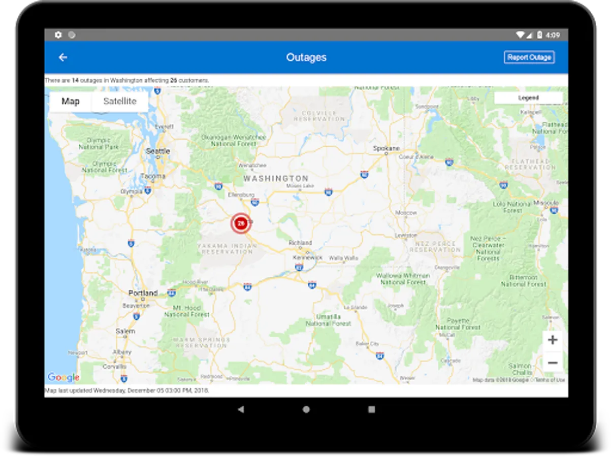 • Get the latest outage details including estimated restoration time, crew status and cause of the outage.