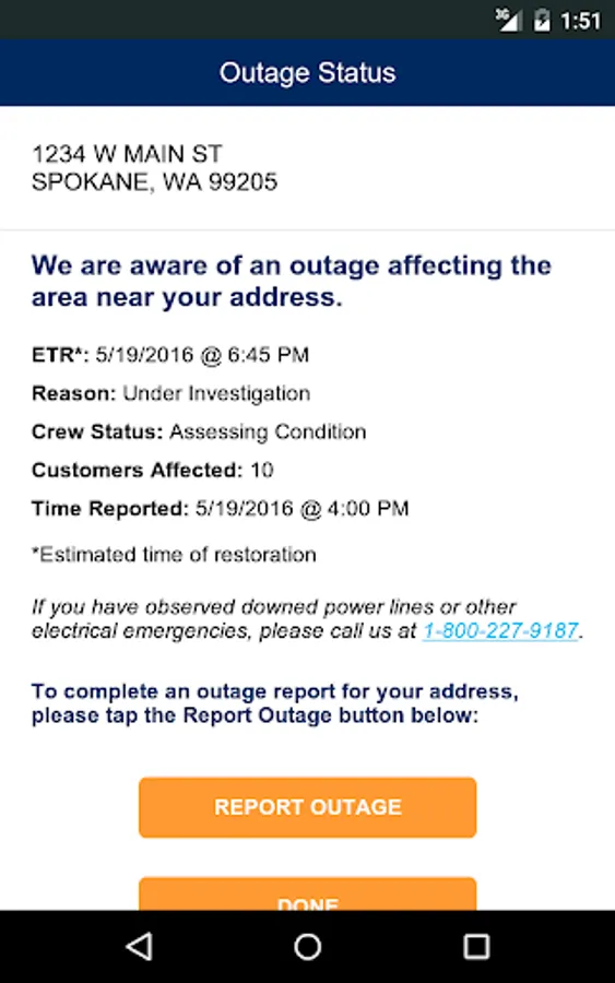 - View the interactive outage map, complete with area weather, regional outage information, and restoration information