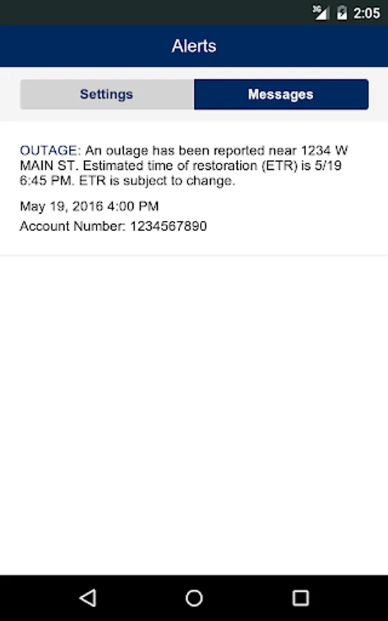 - Sign up for and manage in-app push notifications for billing reminders or outage events