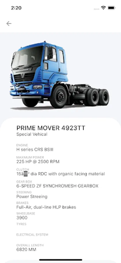 Vehicle category are available in this app. User can short vehicle list by using category. Every product/vehicle has detail specification like Engine, Maximum Power, Clutch, Gearbox, Steering, Brakes, Wheelbase, Overall Length etc. Registered user will also be notified about new product.
