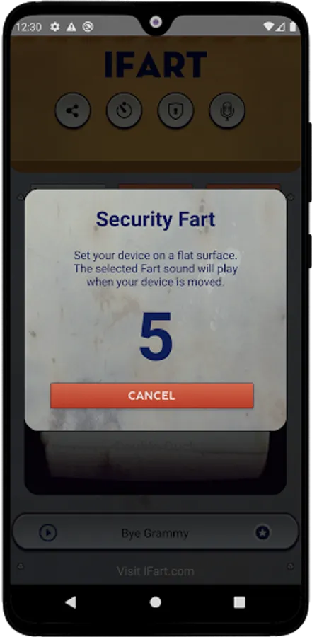 We used to have a really funny paragraph here about how to use our security fart function, but had to remove it. The Security Fart plays a fart sound when your phone is moved. So if you ask someone to hand you your phone, it goes off when they pick it up.