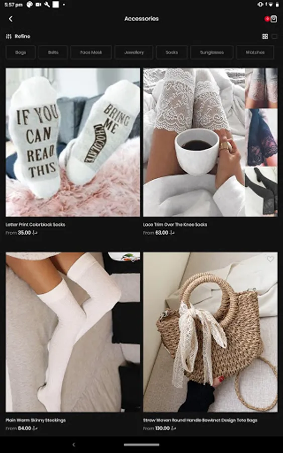 ■ ACCESSORIES: Jewellery, Watches, Bags, Socks, Belts, Face masks & Sunglasses.