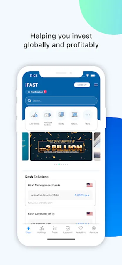 This is a mobile application that designated for CUTA companies who partnering with iFAST platform in Malaysia, exclusively designed to assist the financial planners and clients in streamline the investment processes as well as to reduce the unwanted transactions paraphernalia. By digitalizing the documents to mobile app, the financial planners will be able to provide their clients a seamless, efficient and better investment advisory experiences with this iFAST mobile app.