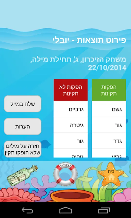 At the end of each game you can follow one of the child's progress and get a report of the words that were produced correctly and words that were produced incorrectly, as well as the practitioner can choose to repeat the words that he had difficulty improving his abilities.