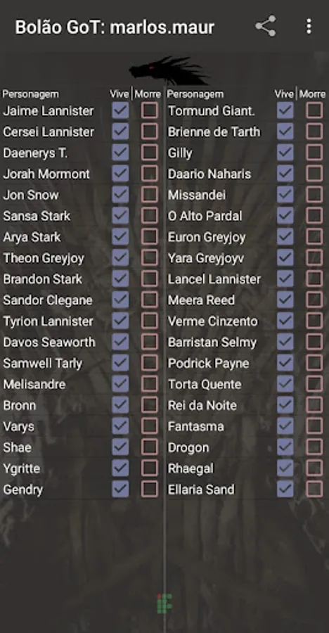 Bolão GoT Screenshots