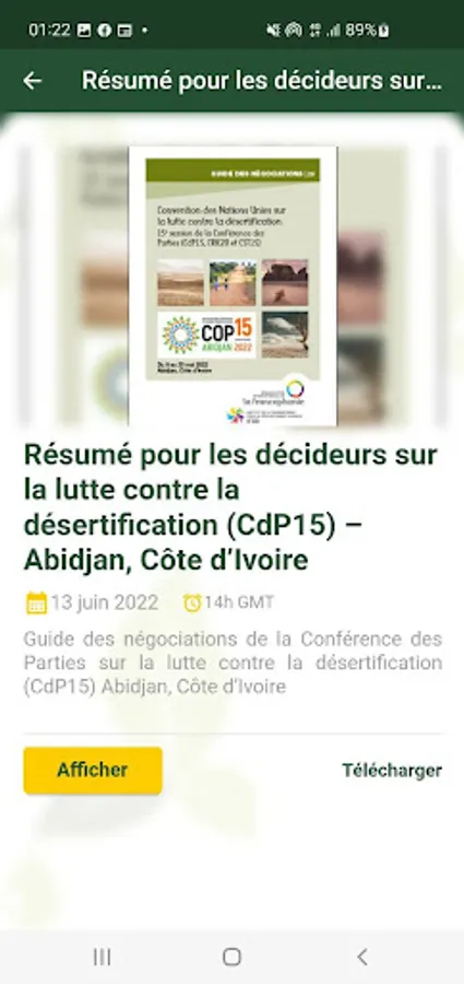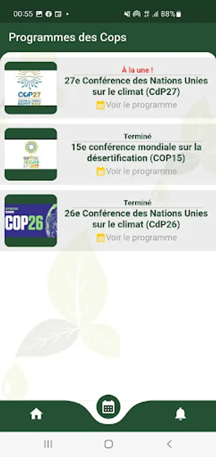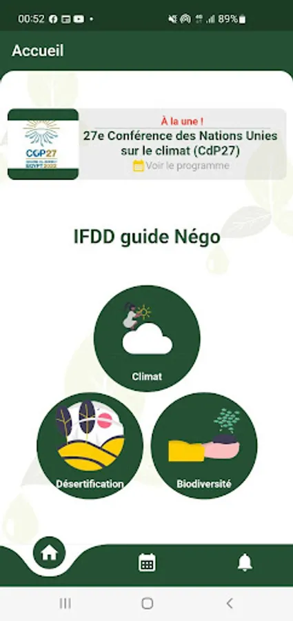 Grâce à cette application, vous avez accès à tous les programmes passés et futurs de l'IFDD en matière de COP Climat, COP désertification, COP biodiversité à partir de 2021.