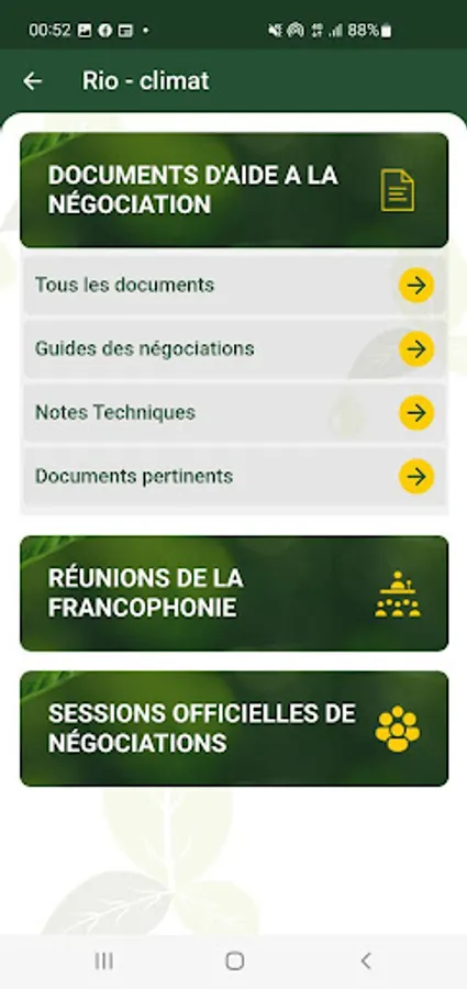 Nous vous proposons également les différents programmes des réunions de la francophonie(Ateliers préparatoires, concertations francophones, atelier de formation terrain) et des sessions officielles de négociation.