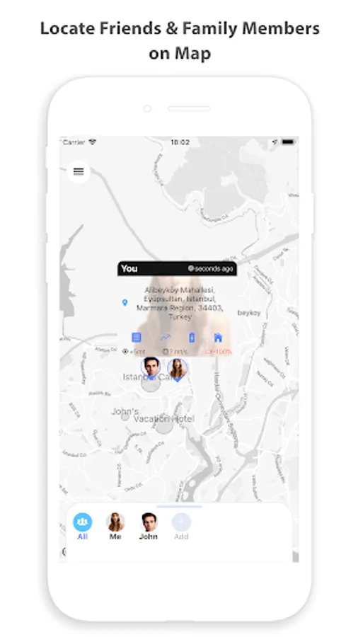 Keep track of your family, spouse and children's locations live by creating virtual fences. Receive notifications when they go outside the designated fences or go to places you do not specify.