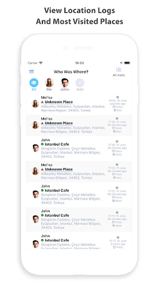 Create virtual fences on the map. Get notified when your family members, friends or people you know go out those fences. Add people via their phone numbers, log locations for up to 30 days.
