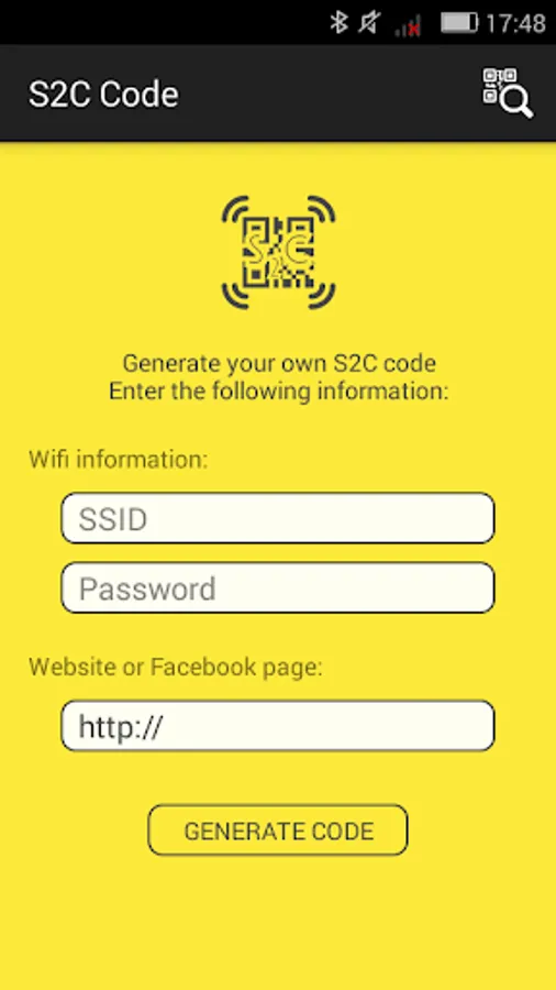 - QR Code Generator: generate S2C-QR code containing wifi information and website information