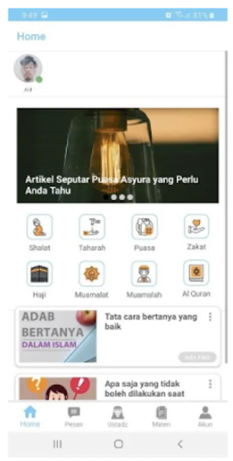A question and answer platform for problems around fiqh law in Islam and a solution for users to overcome these problems. The main feature is the personal direct question and answer feature (chat) with an ustaz (religious expert) regarding the problems faced so that users get correct, precise and accurate answers. Apart from that, you can choose a cleric or religious expert who will be asked according to the educational background or the desired scientific field. Also, it has a feature of reading articles and material about jurisprudence available on the application.