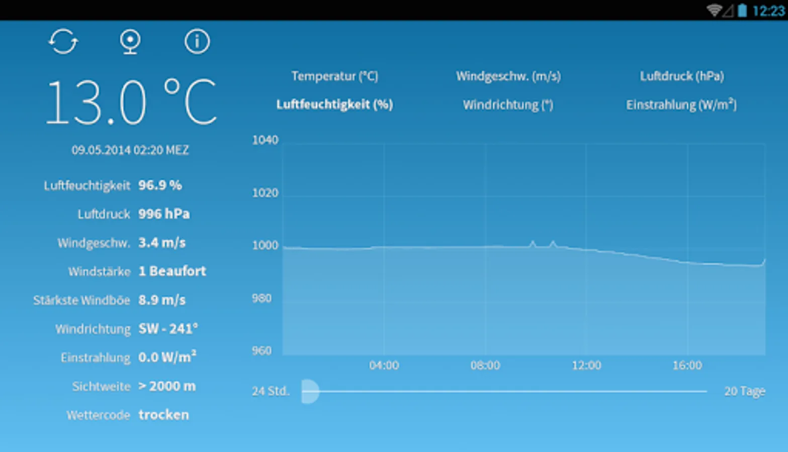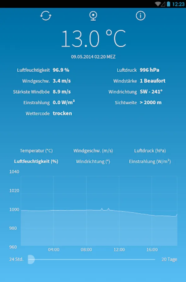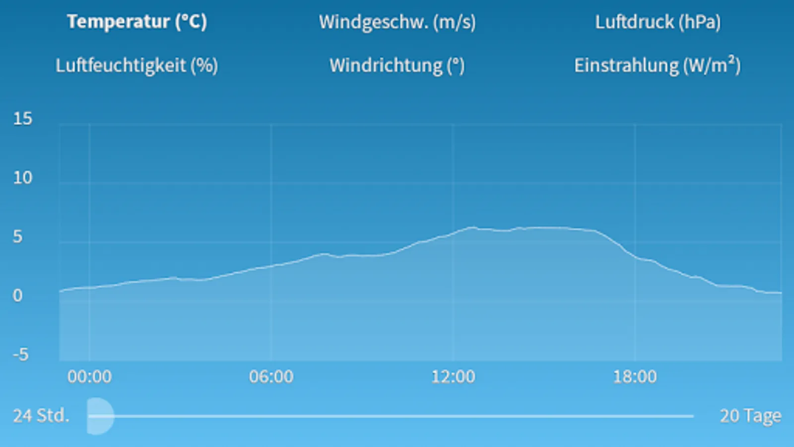 The Institute of Landscape Ecology of the University of Münster operates on the roof of the building in the Heisenbergstr Geo1. 2, 48149 Münster, a weather station. Data from this station (temperature, humidity, wind speed and direction, shortwave radiation and more) are presented here. The last 10-minute averages are directly accessible. In addition, data relating to the last data (period dynamically adaptable) and a current webcam picture of the silhouette of Münster offered. More information can be found under www.uni-muenster.de/klima