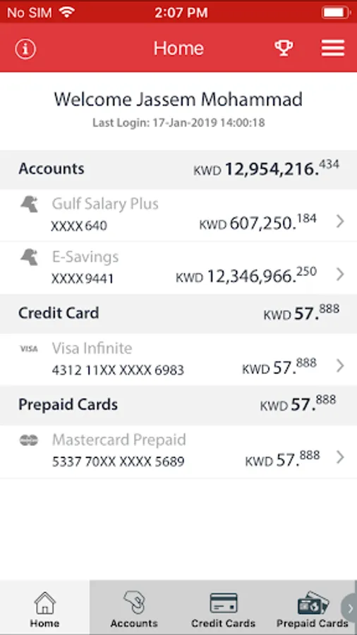 • Get a quick look at your accounts, cards, loans and investments in a single page.