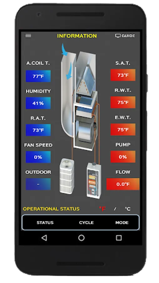 Water Temperature, Air temperature, GPM, CFM Ratio, Humidity, Zoning Status, Unit Operation Status