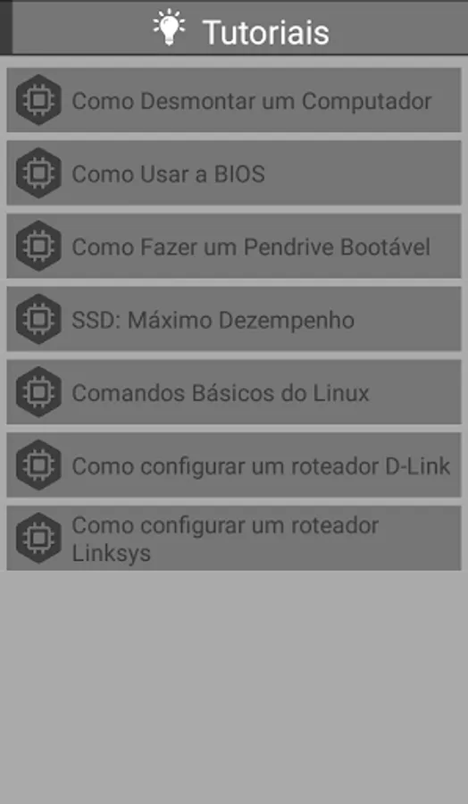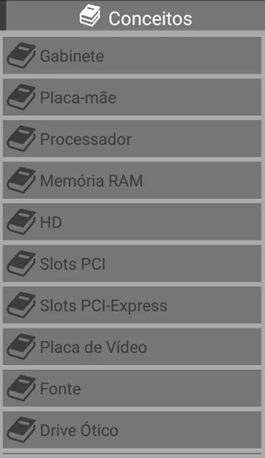 App created to help technicians or graduates in the computer course to learn concepts of the area besides to exemplify routine actions to solve problems