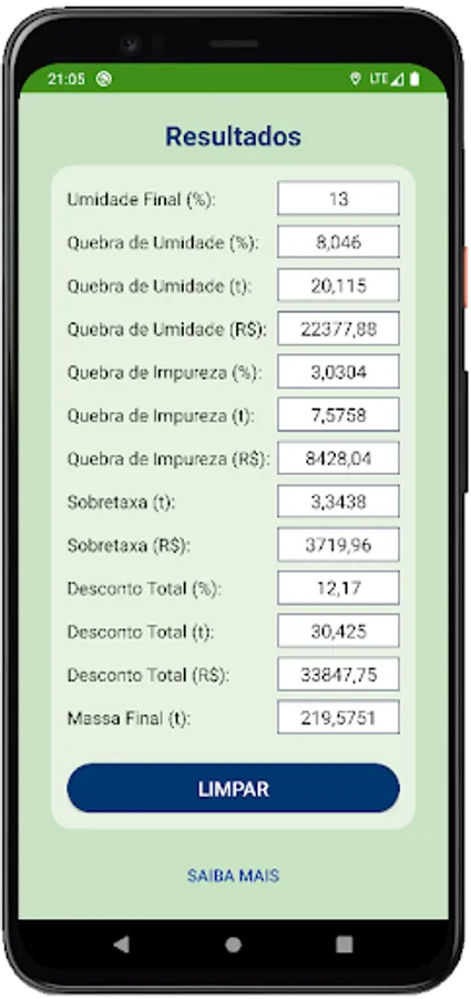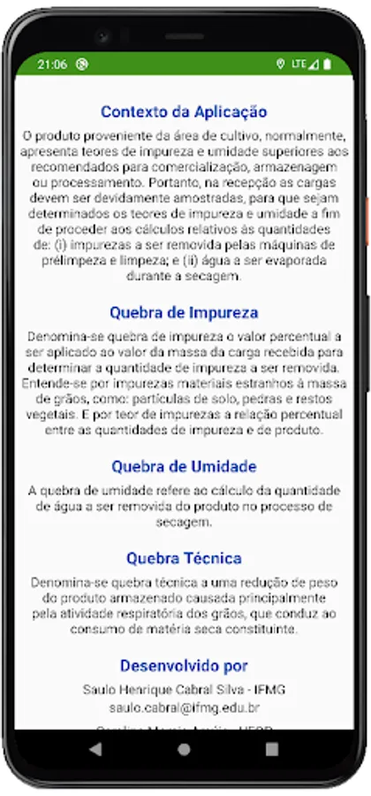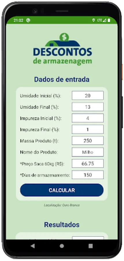 An application developed collaboratively to help calculate storage discounts during grain/cereal storage, considering impurity, moisture and technical breakdown.