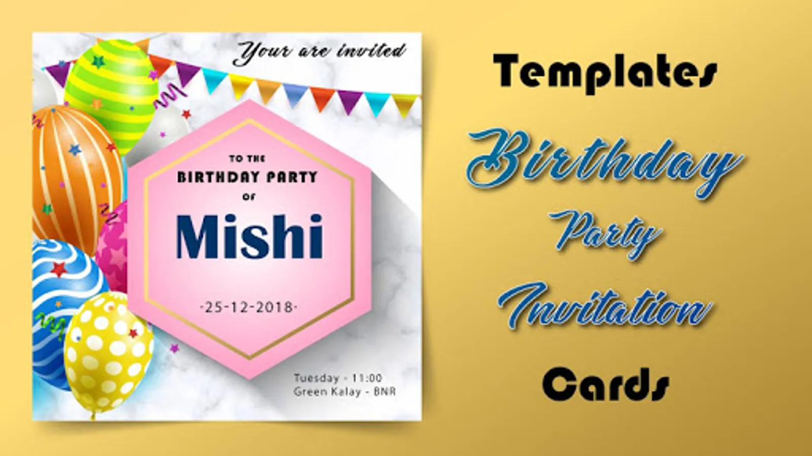 Create Birthday Invitation Cards in a few clicks. Just pick a Ready-Made Template, edit and save for sharing. Design special Digital Brithday Party Invitation Cards for your family and friends. Stickers and Templates make it easy to Design invitation card in seconds. If you want to Design your own Birthday Party Invitation Card, just select a Background image(from Backgrounds, Gallery or Camera), select size, Type Text (Name, Date, Time, venue) and paste stickers of Cakes, Candles, balloons etc and save to share with friends/family members or on Social media like Facebook, Whatsapp, Messenger, Twitter, Skype, Instagram. Birthday Card Designer / Birthday Card Maker / Birthday Invitation Card Designer / Birthday Invitation Card Maker / Birthday Invitation Card Generator will help you Design your kids, girls, Baby boys, Baby girls, elders, youngers Birthday Card very fast and quickly. Make this Special occasion a very special by Creating Printable birthday cards. Different Themes/Templates make it faster to generate Brithday Cards, Birthday Greeting Card, Birthday Card of Mother, Birthday Card for Father, Birthday Card with name on cake, Birthday Card with photo on cake, name on Birthday Cake, Photo on Birthday Cake, Birthday card for your lovers, Birthday card for family, Birthday Wishes for friends, Birthday card for Teachers, Birthday card for Students, Birthday card for Grandmother, Birthday card for Grandfather, Funny Birthday card.
