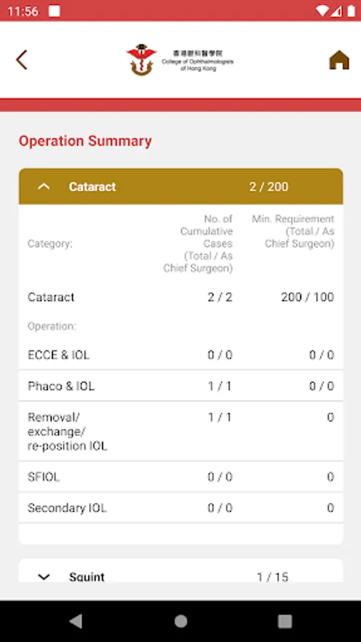 The COHK eLogbook app allows trainees of the College of Ophthalmologists of Hong Kong (COHK) to record surgical records and active assessment easily during their training. It also allows COHK trainers to view and verify the active assessment records for their trainees.