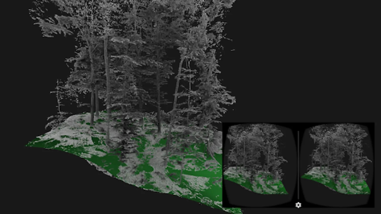 LiDAR VR Viewer is dedicated to the visualization of point clouds and surfaces as an immersive experience through virtual reality. With a Bluetooth controller and a simple head-mounted display such as Google cardboard, it turns into a powerful tool to investigate and explore 3D data.