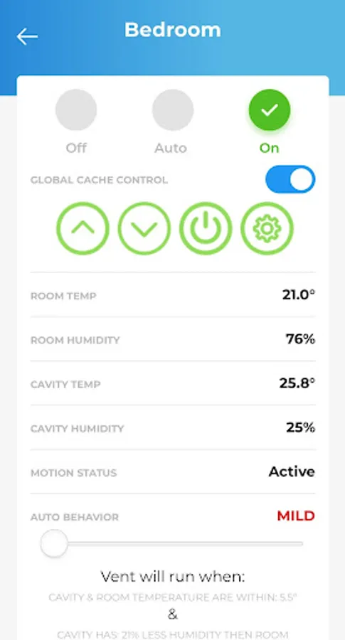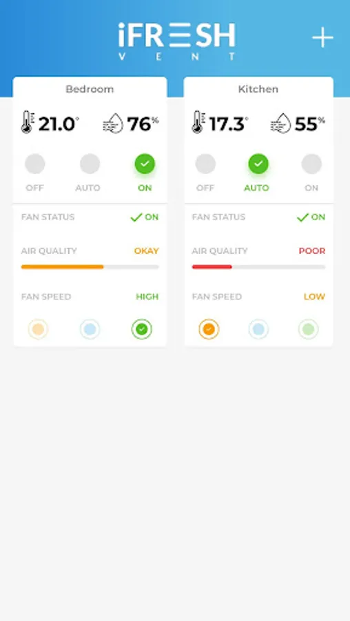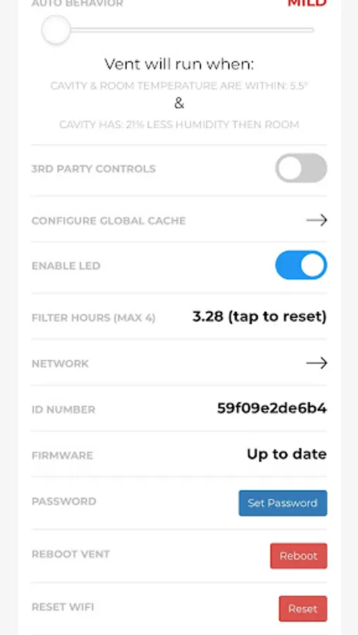 Full control over your iFreshVent devices. View and configure your device to control the humidity in your home.