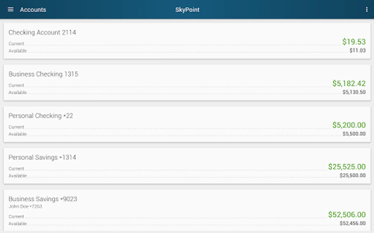 Below is a list of just some of the services you can access with SkyPoint’s mobile banking Android app:
