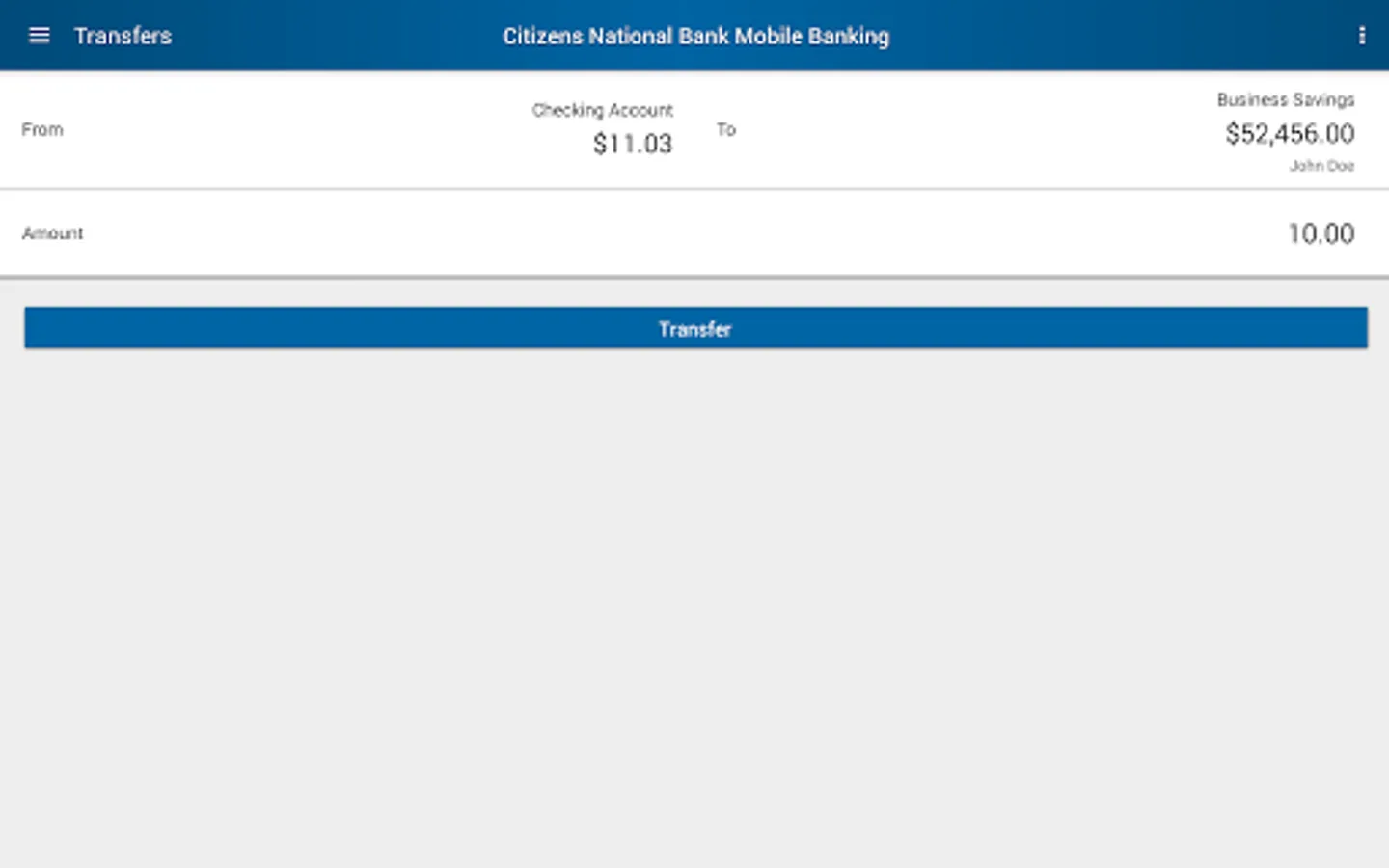 Citizens National Bank Mobile Banking is like having your very own bank right in your pocket! You can check your account balances and history, transfer money between accounts, pay your bills, deposit checks (phone only at this time, tablet check deposit coming soon!) view and activate your cash back offers and even find a CNB branch or ATM location near you – all from your Android phone!