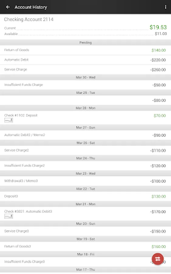 • Check available balances & transaction history