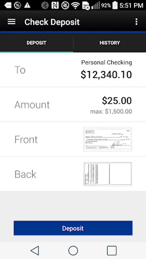 • Check your account balances and up to 180 days of account history, complete with check images.