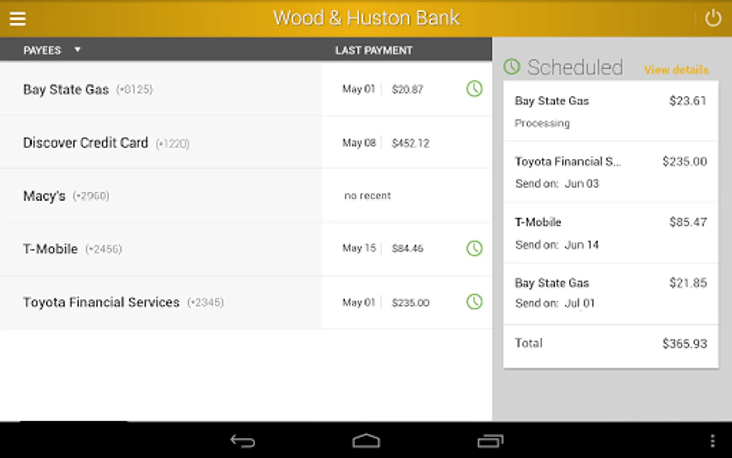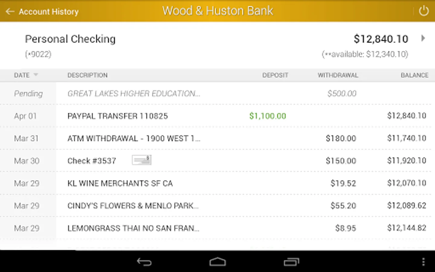Wood & Huston's mobile app provides you quick, easy, and secure access to your accounts – Anytime, Anywhere. Check your balances, deposit checks, transfer funds, pay bills, set alerts and more. Enjoy a seamless mobile experience designed exclusively for your Android phone or tablet.