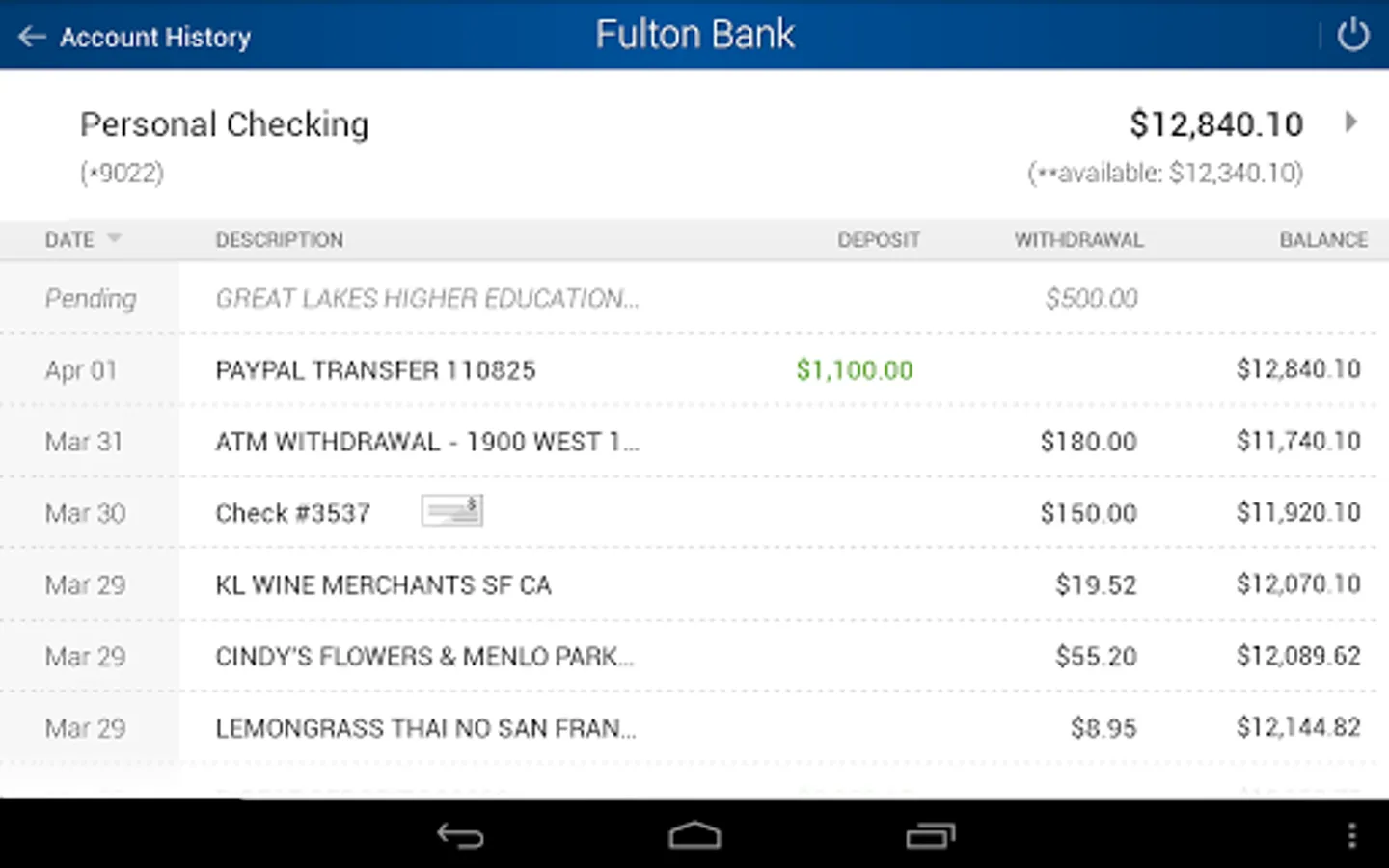 - Check balances on your Fulton Bank accounts, including checking, savings, and more.